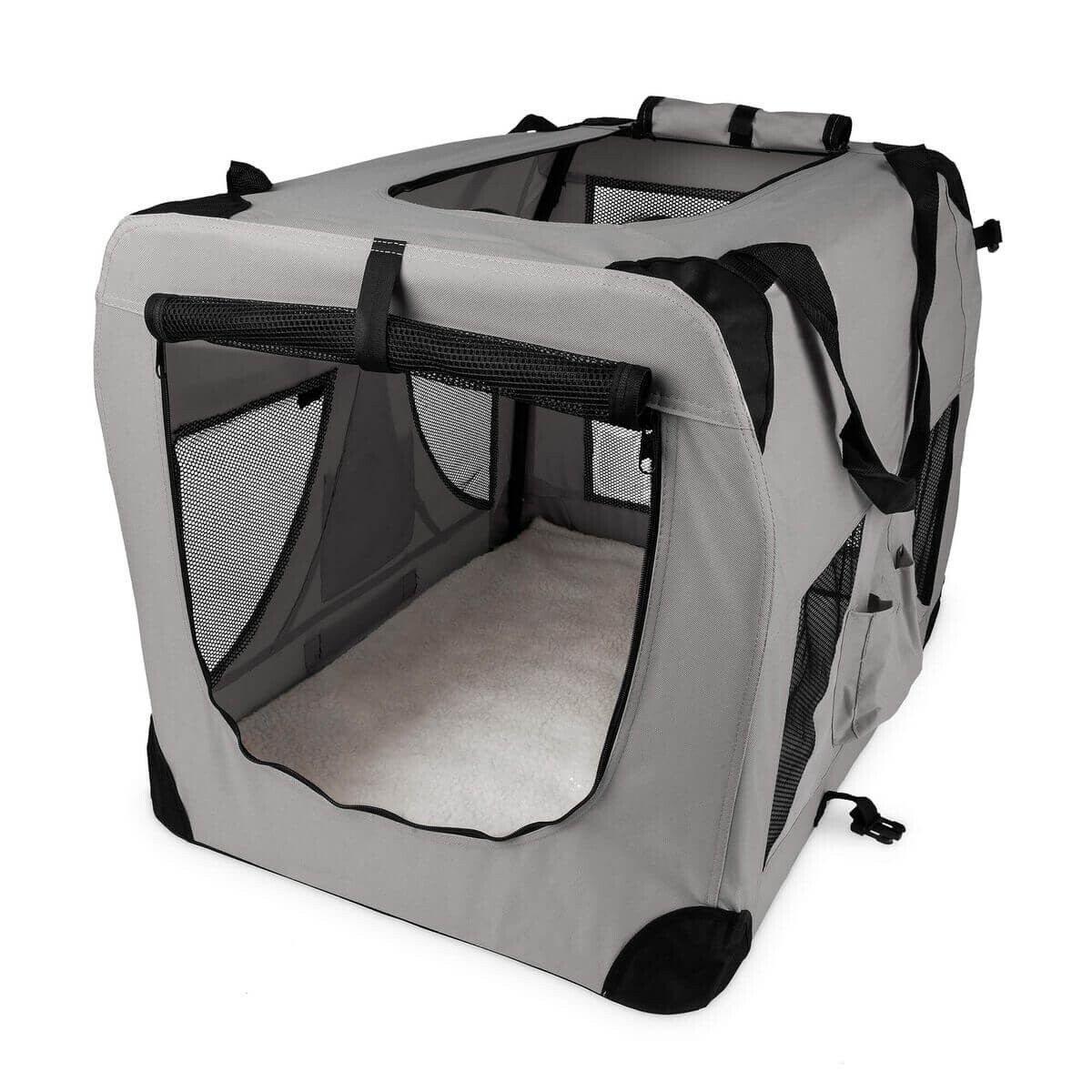 Votre chéri a une vue : deux grandes fenêtres peuvent être ouvertes et roulées vers le haut comme entrée et sortie grâce à une fermeture éclair. Vous pouvez également mettre ou sortir votre chéri par le dessus car le toit peut être ouvert par une fermeture éclair. Pour apaiser le chien, la boîte peut être assombrie grâce aux stores extérieurs.